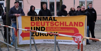 06.03.2016 Volksverhetzer in TemplinStelldichein auf dem MarktplatzTemplin (ipr) Die NPD hat am Samstag auf dem Templiner Marktplatz mit etwa 40 Leuten gegen das Asylrecht demonstriert und für ihre Form der Meinungsfreiheit gekämpft. Da passte es gut, dass der KZ-Tattooträger und noch nicht rechtskräftig verurteilte Volksverhetzer Marcel Zech gemeinsam mit den weiblichen Parteigrößen Manuela Kokott und Aileen Rokohl nach Templin gekommen war. Einige wenige Templiner, die Zech erkannten, machten sich dann allerdings doch Sorgen, dass der Mann möglicherweise die Gelegenheit nutzen könnte, um im lokalen Spaßbad, der Naturtherme, zu baden. Das hätte zu Komplikationen führen können.