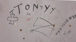 Tony hat sich wieder präsentiert. Neben diesem Namen, Sieg-Runen und verkehrten Hakenkreuzen ist das "Sieg Heil" und "Hay Hitler" zu lesen. Ein wenig Spaß muss sein, meint er wahrscheinlich. Möglicherweise hat es ja nach über zwei Wochen auch die Polizei bemerkt und sorgt für die Entfernung dieser Art von Straßenkunst. Ihre Meinung |