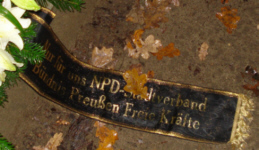 27.11.2009 Heldenverrenken in SchwedtGesteck heimlich abgelegtSchwedt (ipr) Lange hat man nichts vom Nationalen Bündnis Preußen gehört und gelesen. Doch just zum Volkstrauertag am 15. November sollen sie wieder ein Lebenszeichen von sich gegeben und gemeinsam mit den rechten Kameraden der NPD, FNUM und weiteren Freien Kräften "im gesamten Gebiet der Uckermark Gedenkveranstaltungen" abgehalten haben. Vermutlich hat hierbei der Ortsbereich Prenzlau der NPD den Mund mal wieder etwas voll genommen. Als vermeintlicher Beweis für das uckermarkweite Gedenken zieren gerade einmal zwei nachgelieferte Fotos den entsprechenden Artikel auf der Website "Nationales Netztagebuch".