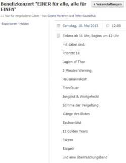 16.04.2013 Rechts-Rock in FinowfurtNach dem Konzert ist vor dem KonzertFinowfurt (ipr) Im Netz wird erneut für ein Benefizkonzert auf dem Gelände des Rechtsextremisten Klaus Mann in Finowfurt geworben. Das Konzert soll am Pfingstsamstag stattfinden. Dreizehn Nazibands sind angesagt. ![]() Benefizkonzert "Einer für alle, alle für einen" - unter dieser Überschrift wird für den 18. Mai nach Finowfurt mobilisiert. Karten gibt es ausschließlich im Vorverkauf. Wer dran teilnehmen will, muss 30 Euro in die Hand nehmen. Es wird drauf hingewiesen, dass eine Anreise ohne Karte zwecklos ist. Es werden mehrere Hundert Nazis erwartet. Die Berliner Rechtsextremisten Gesine Hennrich und Peter Kautschuk organisieren den Kartenverkauf. Welchem Guten Zweck das Geld dienen soll, ist noch unklar. Gesine Hennrich sprach gegenüber gegenrede.info von "Kameraden in Not". Namen wollte sie nicht nennen. Uwe Schoknecht, Bürgermeister der Gemeinde Schorfheide zu der Finowfurt gehört, bestätigte, dass Klaus Mann eine Veranstaltung für den Pfingstsamstag angemeldet hat. Einzelheiten konnte er allerdings noch nicht nennen. Ihre Meinung |