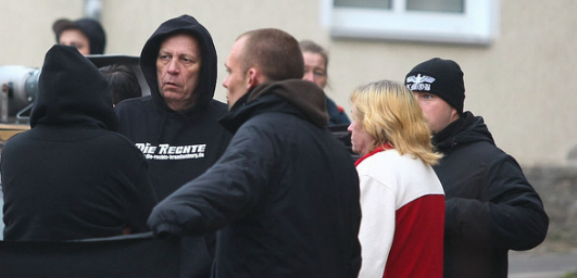 19.11.2013 "Die Rechte" in Brandenburg auf Anti-FlüchtlingstripKMOBchen in OderbergOderberg (ipr) Bis zu 50 Leute sollen sich laut Polizeiangaben am Samstagnachmittag im beschaulichen Oderberg im Barnim fast an der Grenze zu Polen an einer Kundgebung gegen zukünftige Flüchtlingswohnungen beteiligt haben. Darunter auch zwei Uckermärker. Die Potsdamer Neuesten Nachrichten schreiben von 35 Nazis und 20 neugierigen Jugendlichen, die sich das Spektakel anschauen wollten. Das Ganze begleitet von knapp einer Hundertschaft der Barnimer Polizei und nur zwei protestierenden Frauen. Bürgermeister Roman Stähr und sein "Bündnis für Oderberg" blieben an diesem Tag jedenfalls unsichtbar.