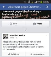 23.03.2015 Angermünde: NPD-Mahnwache findet nicht stattBürgerbündnis will trotzdem demonstrierenPinnow (ipr) Der NPD-Kreistagsabgeordnete David Weide hat die für den 28. März angekündigte Mahnwache gegen Asylbewerber in Angermünde "aus organisatorischen Gründen" wieder abgesagt. Dass die Mitglieder der Facebook-Gruppe "Uckermark gegen Überfremdung und Asylmissbrauch" stattdessen in die Bresche springen, ist kaum zu erwarten. Das Bürgerbündnis in Angermünde will am 28. März trotzdem mit einer Demonstration und einem Straßenfest präsent sein. Nach einem Bericht der Märkischen Oderzeitung über die Gegenveranstaltung des Bürgerbündnisses hatte David Weide noch öffentlich gemotzt: "Wie schon erwähnt es ist keine NPD Veranstaltung!!! Hört nicht darauf was die MOZ oder andere Medien darüber sagen oder schreiben." Das ist Selbstverleugnung pur. Wer wie im Folgenden argumentiert, kann nur zu einer Nazi-Veranstaltung mobilisieren: "Es geht darum, unsere Heimat und unsere Identität zu bewahren. Also werte Bürger aus der Uckermark schließt euch der Mahnwache an und zeigt Widerstand gegen diese falsche Politik der Demokraten." ![]() Der friedfertige David Weide ![]() Die Schuldfrage ... Aber der Feind ist nicht nur die Demokratie, der Feind steht sogar in den eigenen Reihen. Kurz nach seinem Aufruf zur Mahnwache hat sich David Weide noch einmal kritisch mit den rechten Kameraden in Angermünde auseinandergesetzt. Er wirft ihnen vor, aggressiv, vermummt und dadurch bürgerfern gewesen zu sein. Auch sollen sie seiner Meinung nach schon beim ersten Auftauchen der Gegendemonstranten provoziert haben. Das ist richtig beschrieben. Wenn aber jemand eine aggressive Grundstimmung vorgegeben hat, dann war es David Weide selbst. Schon bei seiner Ankunft am Asylbewerberheim hat er dem Kameramann des rbb das Objektiv zugehalten und ihn wegdrängen wollen. Und die Mahnwache zu beenden, um kurz darauf mit einer Spontandemo vors Asylbewerberheim ziehen zu wollen, sorgt auch nicht gerade für die friedlichste Atmosphäre. ![]() Die BRD ist Schuld ![]() … sollte unbedingt geklärt werden. Dazu wirft der Admin der Nazi-Facebookseite "Wahrheit für Schwedt" den Angermündern vor, dass sie von Staatsspitzeln gesteuert werden. Kein neuer Vorwurf, der sich gegen eine Frau aus der rechten Szene richtet, die die Gruppe "Uckermark gegen Überfremdung und Asylmissbrauch" nach der misslungenen Mahnwache im Januar verlassen hat. Die Antwort der "Asylantenhasser" aus Angermünde auf die Vorwürfe ließ nicht lange auf sich warten. Gruppenvorturner Matthias Jenrich benutzte dafür das Fake-Profil Robin Hood: "Es ist echt n ding was sich der weide raus nimmt. Jetzt betreibt er offen hetze gegen uns nur weil er nichts auf die reihe bekommt wie man bei den lächerlichen versuchen für das Volk zu sprechen sieht." Und auch für sichtbare Aggressivität der Mahnwachenteilnehmer hat er eine Erklärung: "Es War kein wunder das einige halt etwas wild auf der letzten Mahnwache waren die dank seiner (David Weide die redaktion) ach so guten Planung zum scheitern verurteilt wahr." ![]() ![]() Gemeint ist damit wohl, dass David Weide durch die Ortswahl für die Mahnwache den Protest ins Abseits gestellt hat. Die Anderen sind Schuld. Wer hier Selbstkritik erwartet, der erwartet zu viel. Selbst wenn Facebook nach seinen AGBs handelt und das Fake-Profil Robin Hood löscht, dann lag das nicht an der durchschaubaren Namenswahl, dann steckt die böse BRD dahinter. Wenn zwei sich streiten … Dann freut sich das Angermünder Bürgerbündnis für eine gewaltfreie, tolerante und weltoffene Stadt und ruft für kommenden Sonnabend zu einer Demonstration und Kundgebung unter dem Motto "Musik und Texte für Toleranz. Angermünde gegen Rechts" auf. Die Demonstration beginnt um 13:30 am Bahnhofsplatz. Von dort geht es über die Berliner Straße und die Rosenstraße zum Marktplatz. Dort wird um ca. 14:00 Uhr eine Kundgebung stattfinden. Für die Kundgebung hoffen die Organisatoren, dass sich möglichst viele Menschen mit Musik und Texten für Toleranz daran beteiligen. Ihre Meinung |