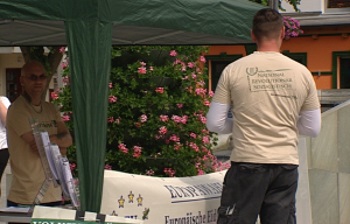 02.06.2018 Unterstützerunterschriften gesammeltAryan Hope goes EuropePrenzlau (ipr) Am Freitag sammelten vier Anhänger der Nazi-Partei "Der III. Weg" in der Prenzlauer City Unterschriften, um bei den Europa-Wahlen im kommenden Jahr antreten zu können. Eine ähnliche Sammelaktion fand bereits vor zwei Wochen in Schwedt statt. 4000 Unterschriften müssen dafür zusammen kommen. Das ist für die Partei wichtig, um ihren Partei-Status nicht zu verlieren. Mit dabei in der Friedrichstraße war Matthias Fischer, eine der Führungspersonen der Kleinstpartei. Er wohnt mit Frau und Kindern seit einigen Jahren in Angermünde. Seine Ehefrau war ebenfalls an der Aktion beteiligt.