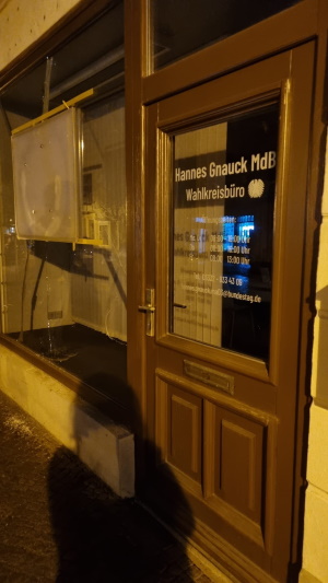 26.10.2022 AfD-BashingAfDler als "Pimmelotter" beschimpftDer uckermärkische AfD-Bundestagsabgeordnete und frisch gewählte Bundesvorsitzende der "Jungen Alternative" (JA) Hannes Gnauck steht im Fokus seiner KritikerInnen. In der Nacht zu Dienstag beschmierte jemand sein Wahlkreisbüro in der Rosenstraße in Angermünde mit weißer Farbe. Vor einer Woche landete ein Stein in der Fensterscheibe des Büros.